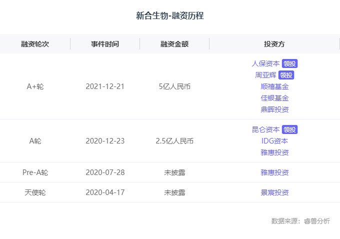 融资丨「新合生物」获得五亿元A+轮融资,人保资